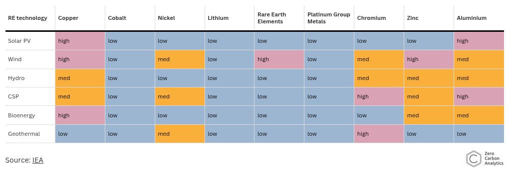 As with other energy technologies, renewable technologies are manufactured using a wide range of minerals.6Table 1 shows a selection of minerals but others are also relevant, including manganese and silicon. The degree to which individual technologies rely on these minerals varies (table 1).