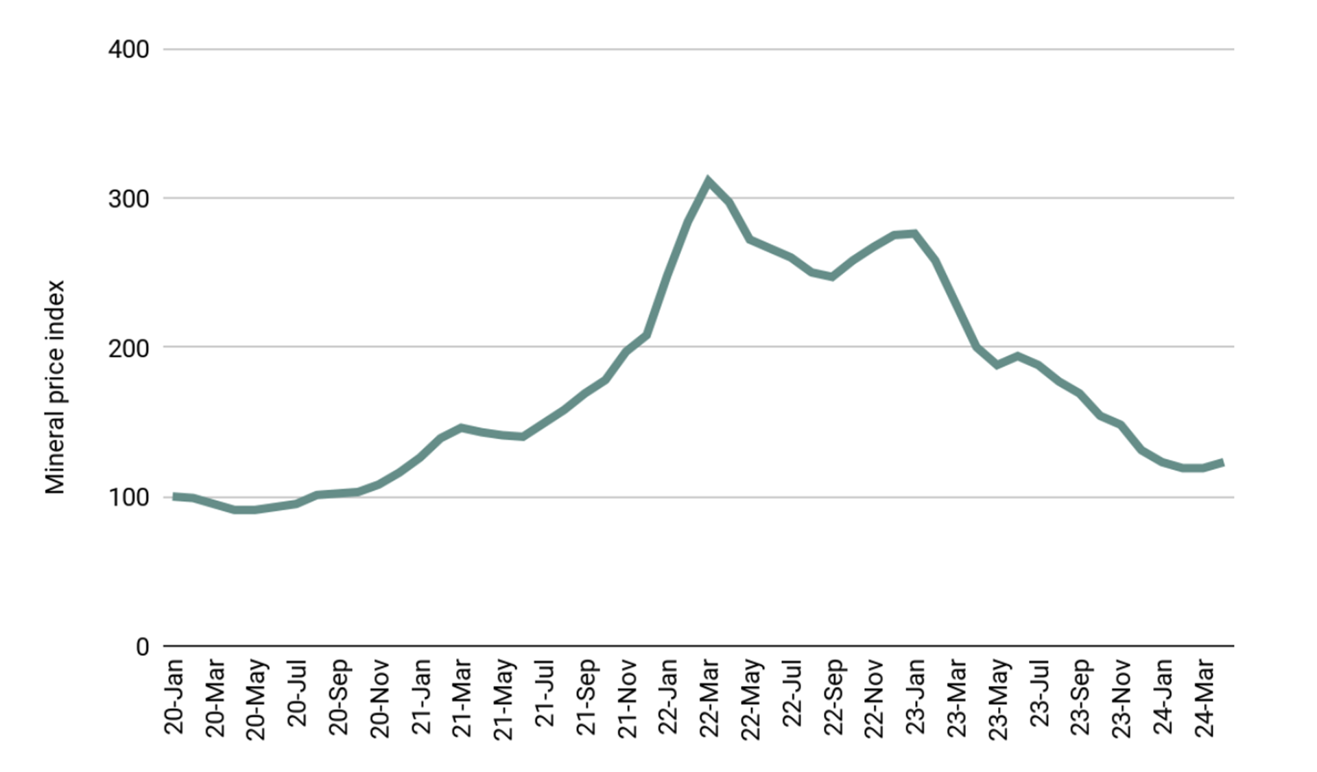 Fig 2: IEA energy transition mineral price index, January 2020-April 2024